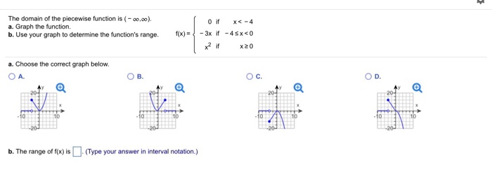 Learn how to determine the domain and range of a function given the graph of the function. I have a graph of a piecewise function below and i am having trouble figuring out the domain of the function in interval notation. Since the domain of a function is the set of all x values we will.